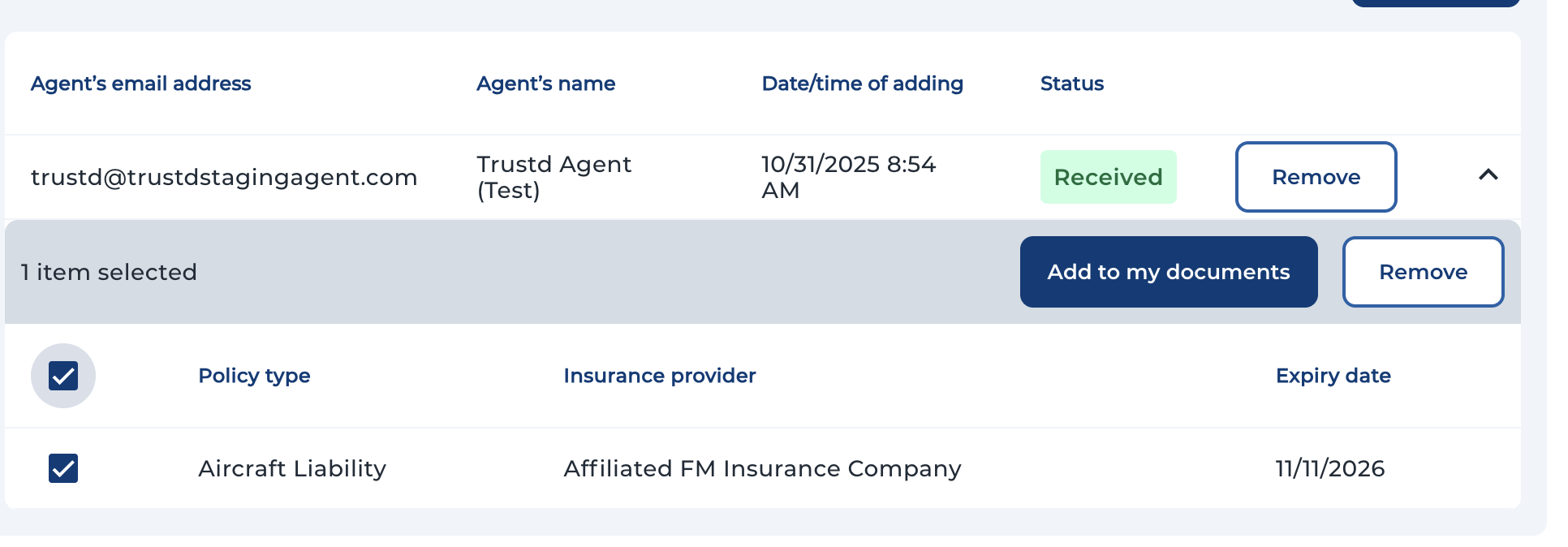 If you are using Trustd as a registered business based in the US, you can retrieve insurance policies from your agents directly from Trustd, instead of manually uploading them.