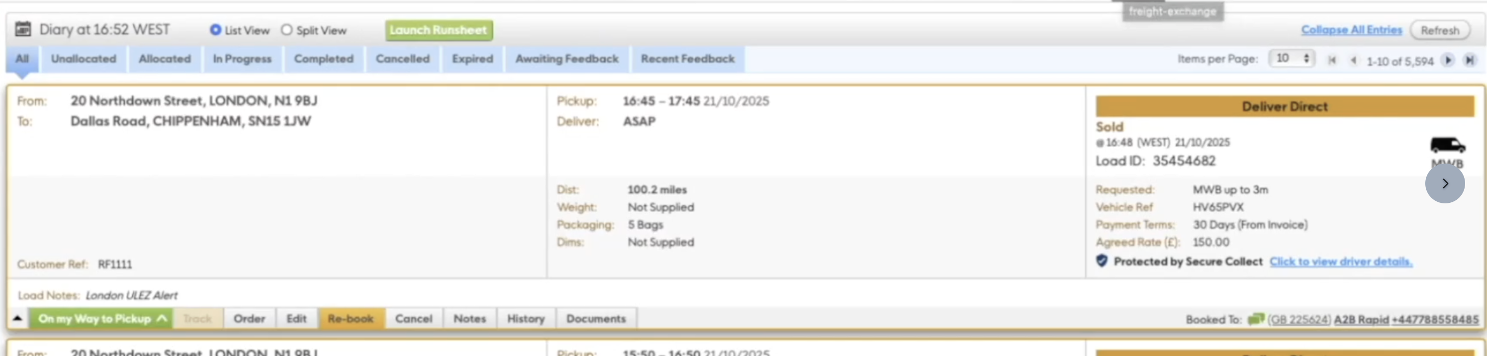 To view the Pre-Check card, the load poster finds the load in their Diary and clicks on "Click to view driver details" as shown in the screenshot below.