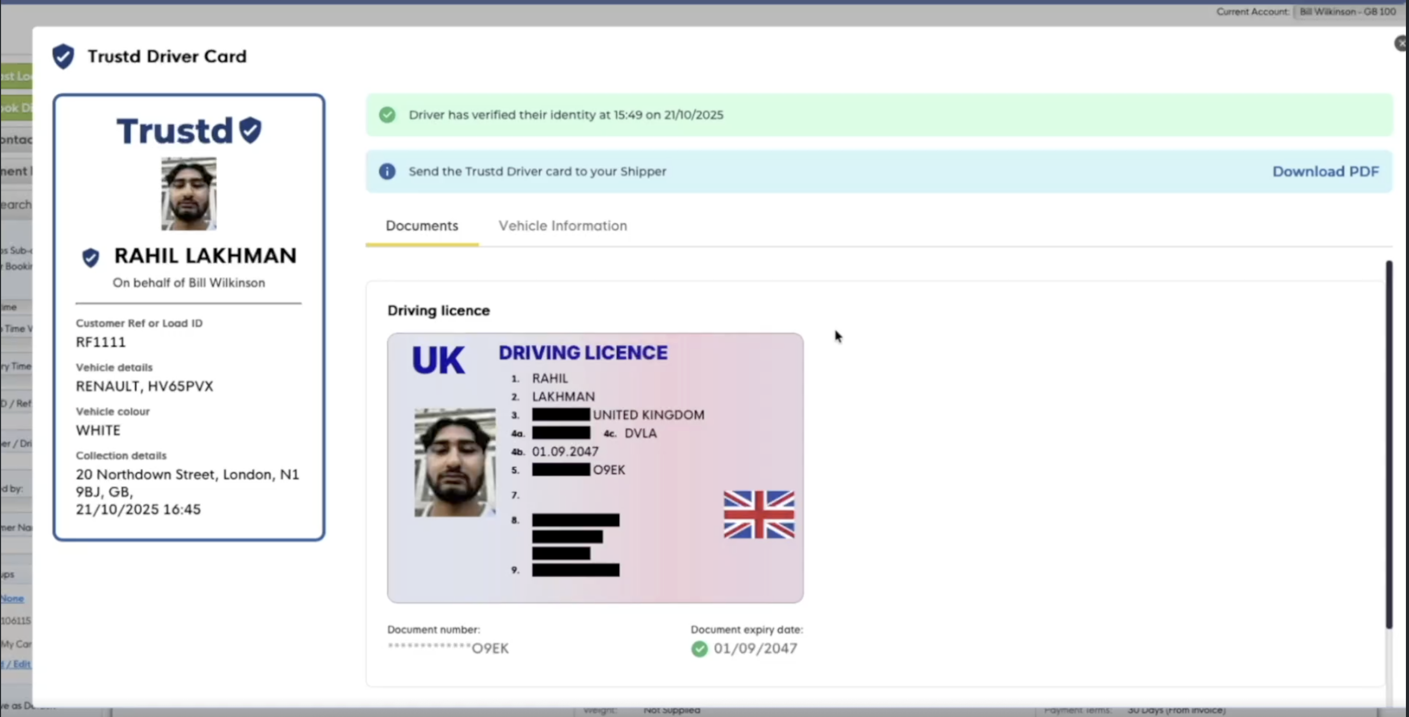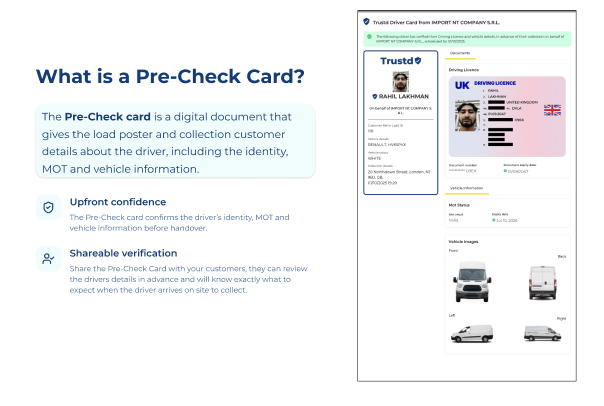 The Pre-Check Card gives the load poster and their customers visibility into the driver, their vehicle details, their insurance and MOT.